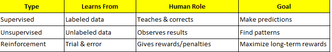 A beginner-friendly dive into Supervised, Unsupervised, and Reinforcement Learning