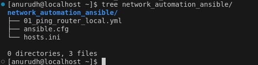 [anurudh@localhost network_automation_ansible]$ Explanation: